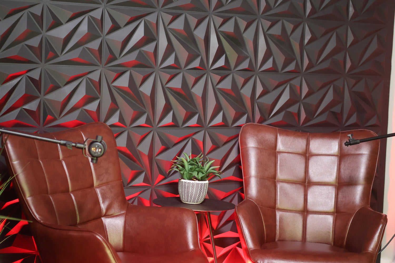 The textured backdrop adds dimension on camera, making even simple setups feel cinematic and dynamic.
