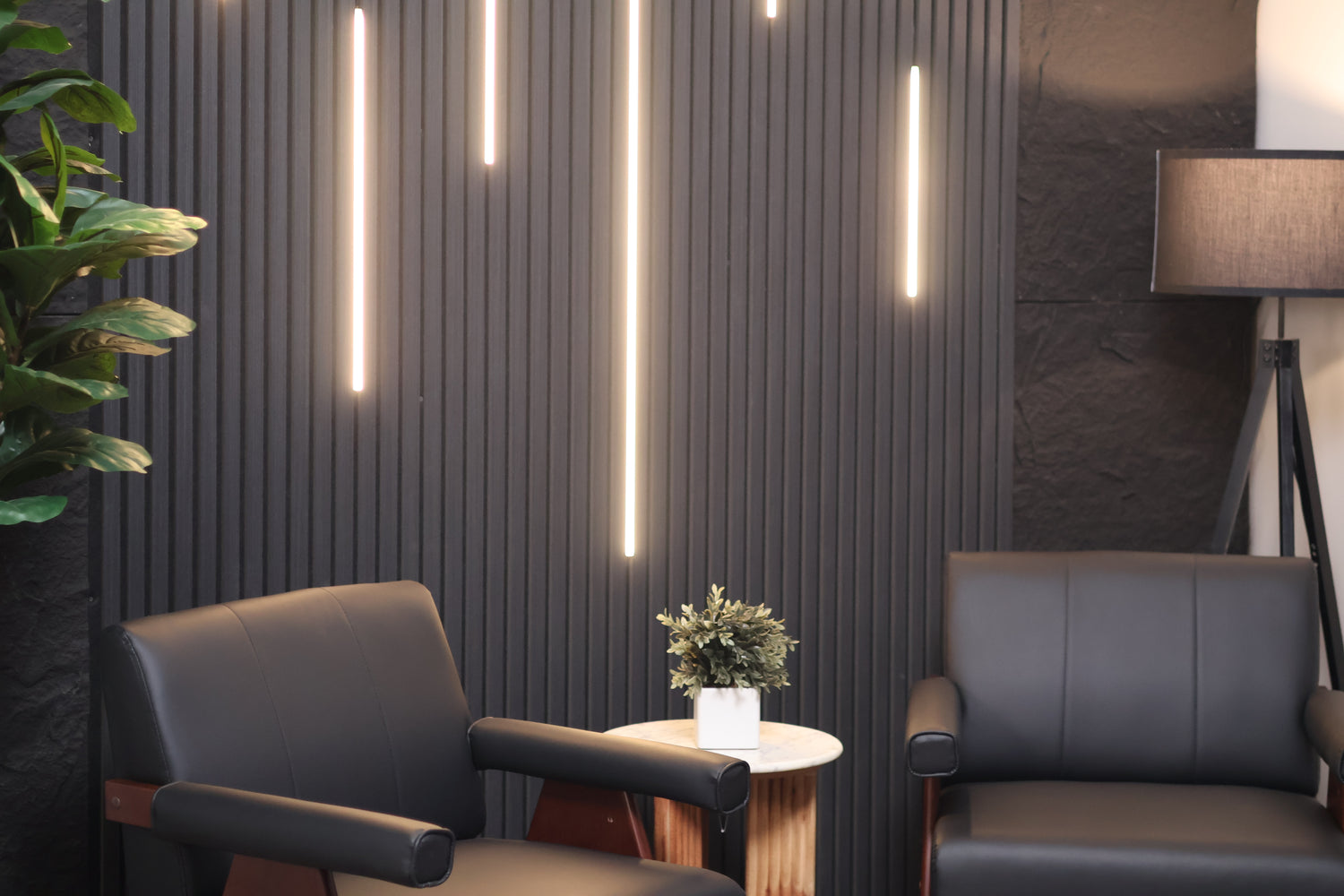 A sleek, modern setup with clean lines, soft accent lighting, and a calm aesthetic. This set is intentionally understated, making it ideal for: